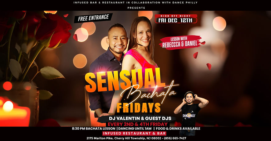 Exciting news! Infused Bar & Restaurant, in collaboration with Rumbero Entertainment & Dance Philly, presents **Sensual Bachata Fridays!**